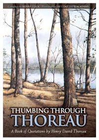 How fitting that Kenny Luck has compiled Thumbing Through Thoreau: A Book of Quotations by Henry David Thoreau. The book features a quote and a pen and ink drawing (illustrations by Jay Luke and Ren Adams) per page. Each quote is annotated by work and page number for easy reference to the original. And, an index is included for quick connection to a particular theme.